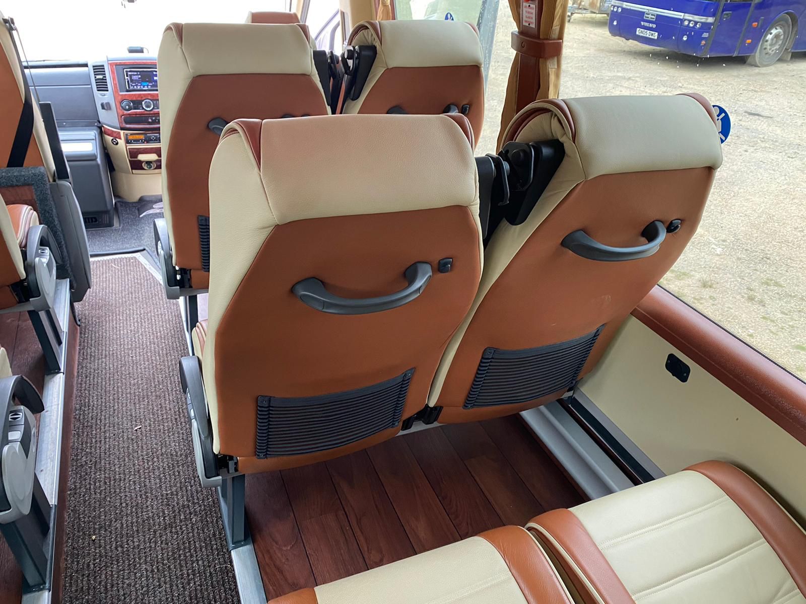 Minibuses have come along way since having to climb through the side door of the Ford Transit and sitting amongst your luggage. The new wave of luxury minibuses, more akin to minicoaches are practically unrecognisable. Typically conversions from extra-long wheelbased Mercedes-Benz or VW vans, often stripped down to the chassis, the minicoaches are built up in the style of a coach. Luxury leather reclining seating and the 2 x 1 seating plan with no passengers up front with the drivers are just for starters. The built-in boots at the rear have enough space to take significant luggage, while the overhead storage space within the vehicle is perfect for smaller pieces of luggage without taking up leg space. Air conditioning and heating units are significantly more advanced with passengers having the benefit of plane-style air blowing units above their seats.
